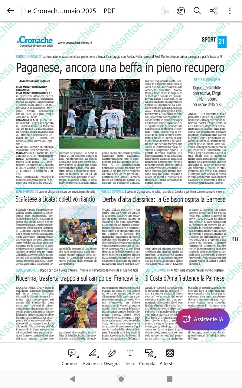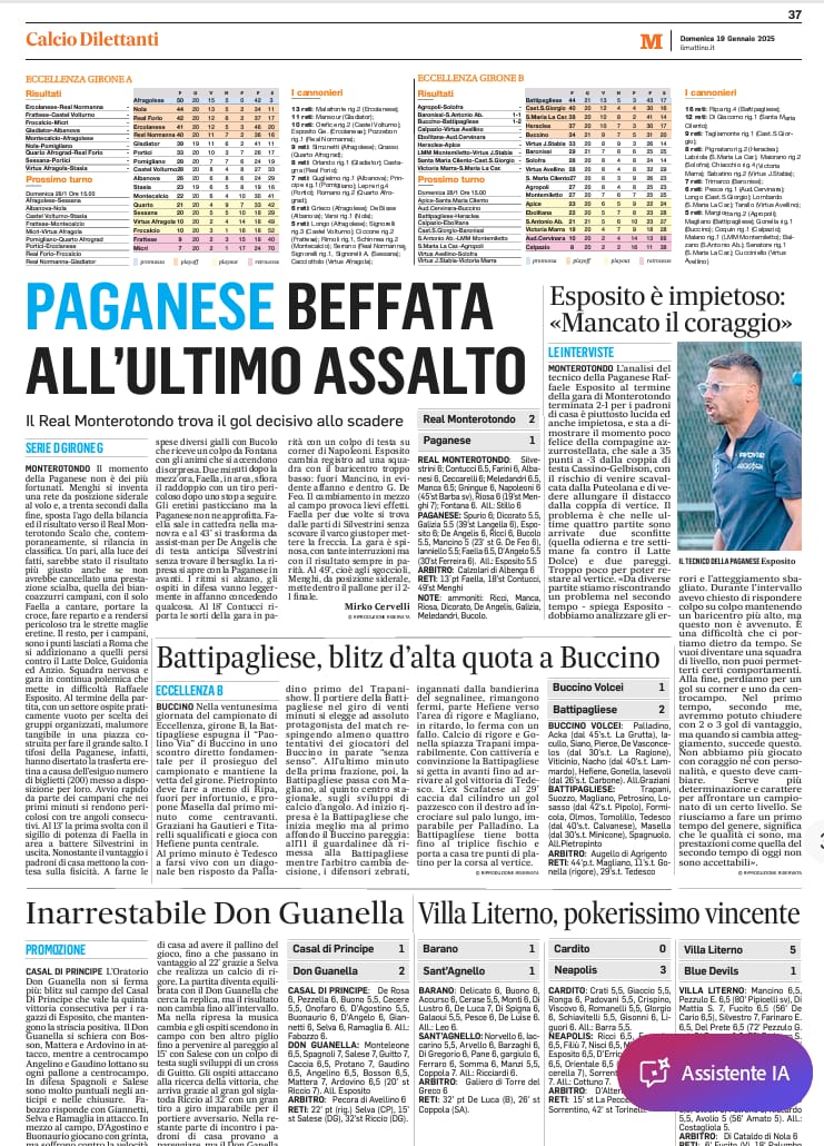 Nell’anticipo del girone G di serie D, la Paganese perde a Monterotondo a un minuto dal termine della gara. Dopo essere passata in vantaggio con una rete di Faella nei primi 45′, la squadra di Esposito non regge per il resto della gara e cade in un match importante per il prosieguo del campionato. Ecco cosa scrivono i giornali in edicola oggi.